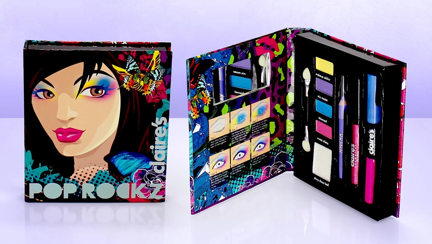 Party Perfect was released at the same time as Flirty Frost but was meant to stay on the shelves after the holiday season. This palette design includes balloons, confetti, rave lighting, and just a touch of Vegas flair. It was the perfect end to the palettes that I designed at Claire’s.
