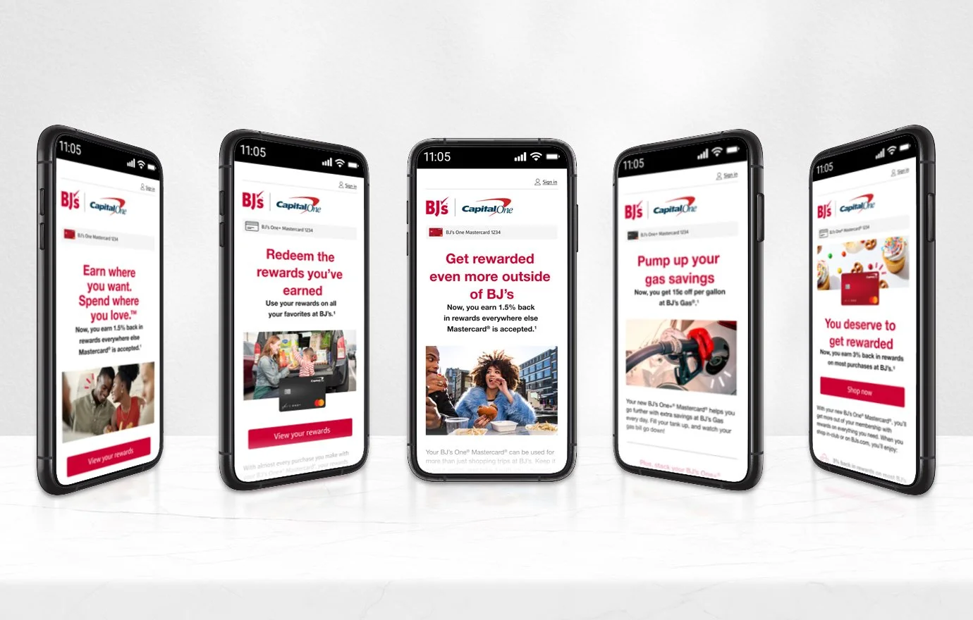 We translated BJ’s member‑first philosophy and witty brand voice into a clear, approachable banking experience. By aligning Capital One’s product priorities with BJ’s humor and rewards focus, the work simplified onboarding, increased member engagement, and made everyday banking feel more human.