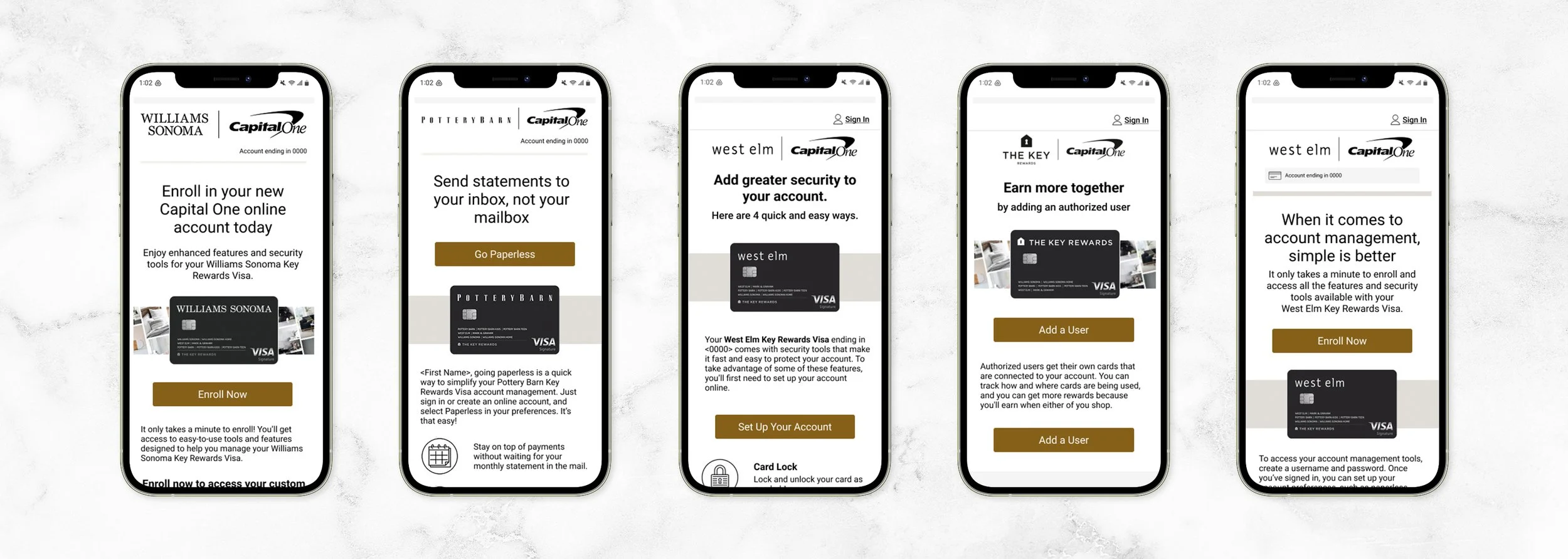 Every conversion includes a welcome kit. These include card carriers with messaging about the card member’s new account, their new credit card, and any terms inserts that are deemed necessary.